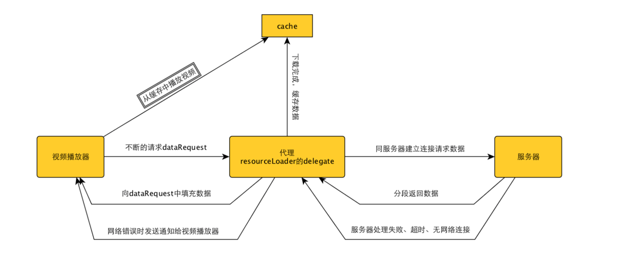 - 需要在视频播放器和服务器之间添加一层类似代理的机制,视频播放器不再直接访问服务器,而是访问代理对象,代理对象去访问服务器获得数据,之后返回给视频播放器,同时代理对象根据一定的策略缓存数据。