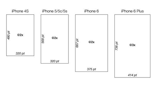 - iPhone6 Plus分辨率414x736,像素1242x2208,@3x
